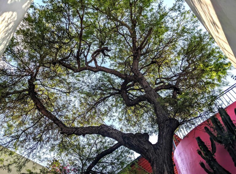 As I started to come down, I dressed and sat in my yard and looked up at the branches of the mesquite above me: the birds it sheltered, the sky it framed, how the lemon green of its leaves touched the azure of the sky. I felt at peace and at one with eternity.